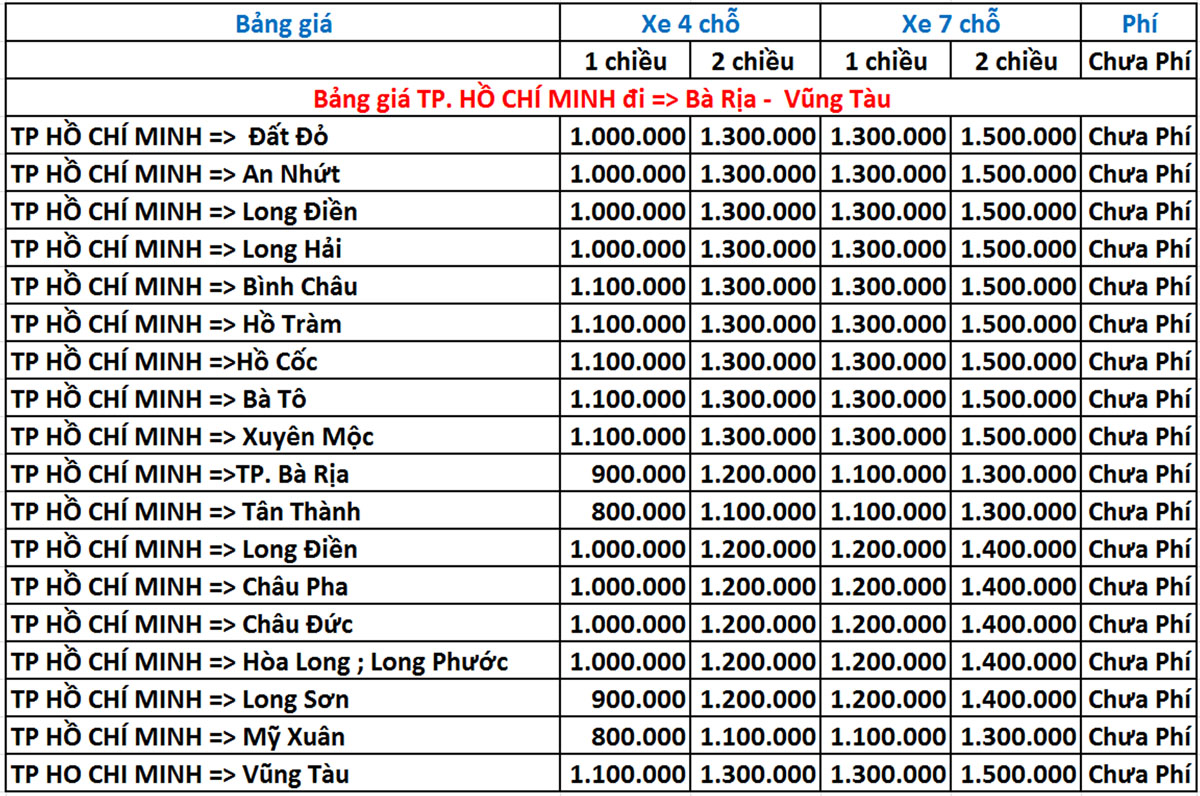 - Loại xe: Chúng tôi cung cấp xe 4 chỗ và 7 chỗ.