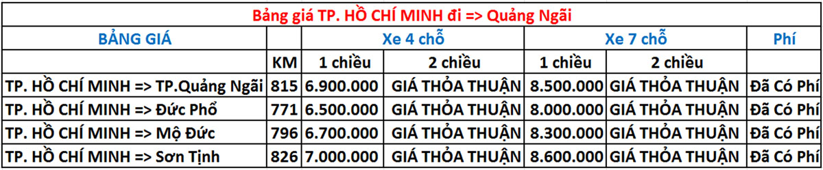 TOUR TP HỒ CHÍ MINH => QUẢNG NGÃI